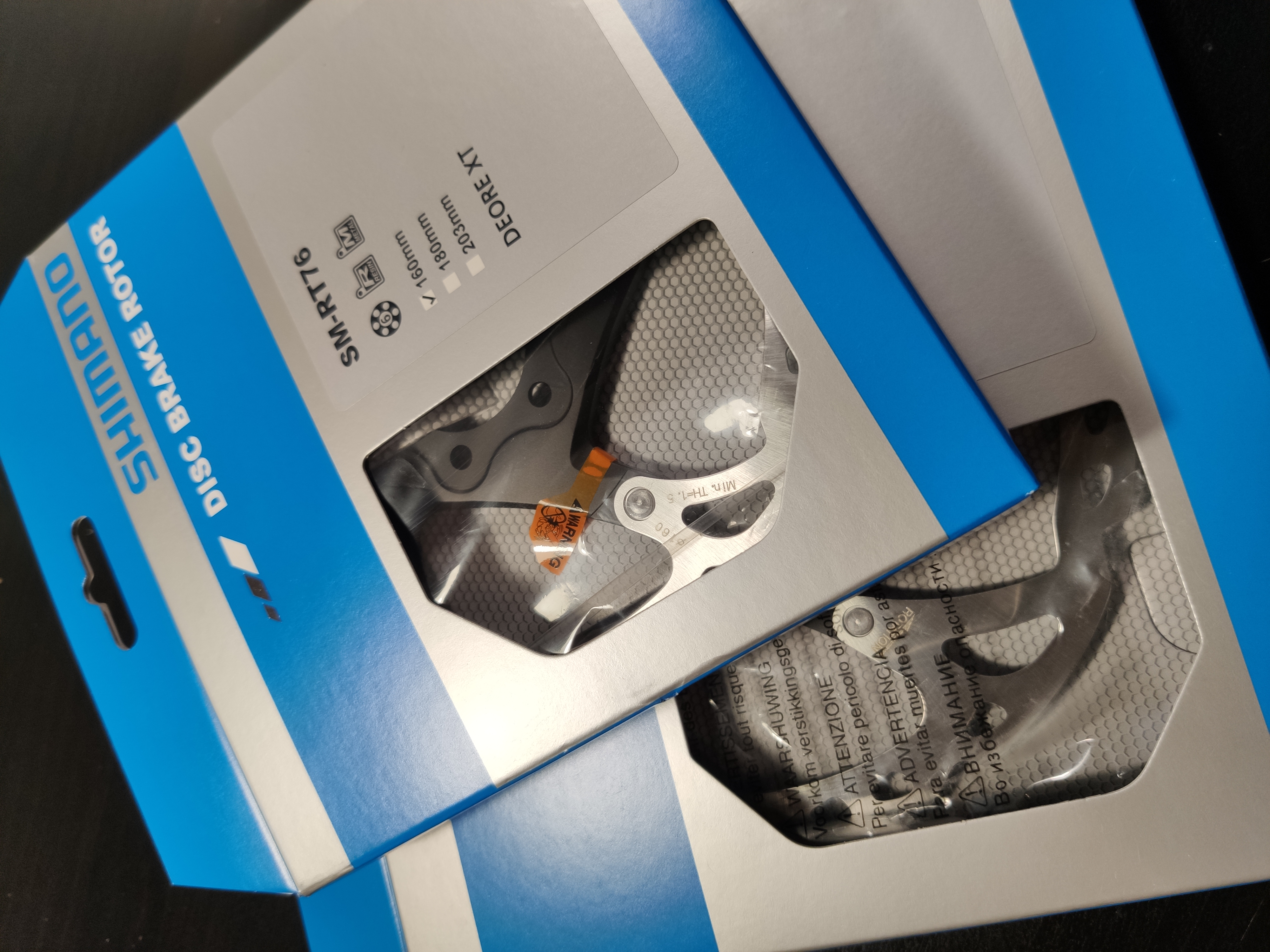 Ротор дискового тормоза Shimano XT RT76 6-болтов. Его изготавливают из легированных прочных марок стали. Для конструкции паука использован алюминий, придающий дополнительную жесткость и позволивший существенно снизить вес изделия (всего около 150 гр). Применение алюминия также позволило значительно снизить теплопроводность от тормоза к втулке.